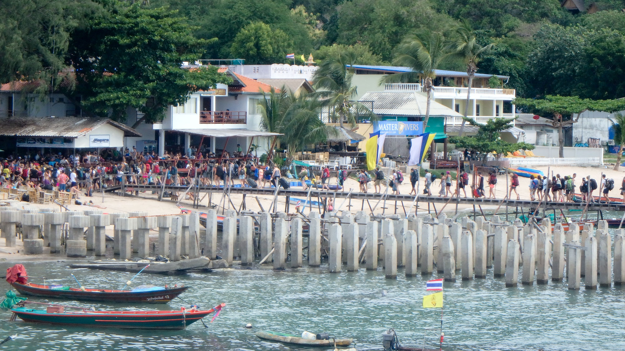 The backpacker and instructor populations combine to support a healthy party culture. It also helps that Koh Tao is a stone's throw away from Koh Pha Ngan which is the home of the "Full Moon Party." There was an exodus the day before the fabled celestial event in which half the backpacker population departed Koh Tao for Koh Pha Ngan.[^n]